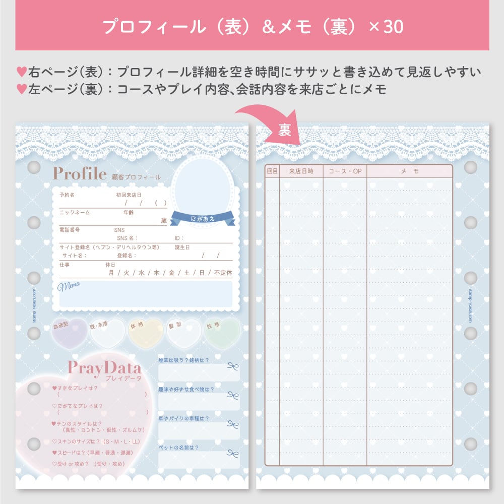 ♡セット内容:プロフィール(表)・接客メモ(裏)×30